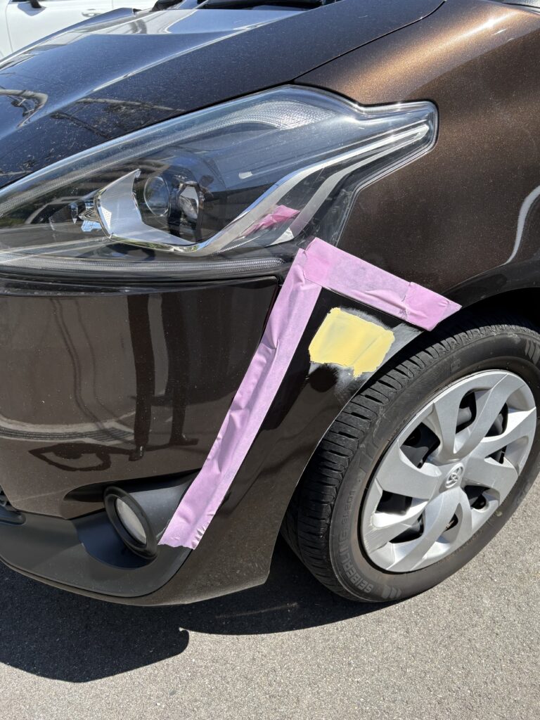 今回、修理のご依頼を頂きましたお車は狭い道を走っていた際に、、、見えない死角に縁石があり擦ってしまった、大切に乗ってきたお車で綺麗にしたい、、、と御入庫頂いたのはシエンタです😢!!