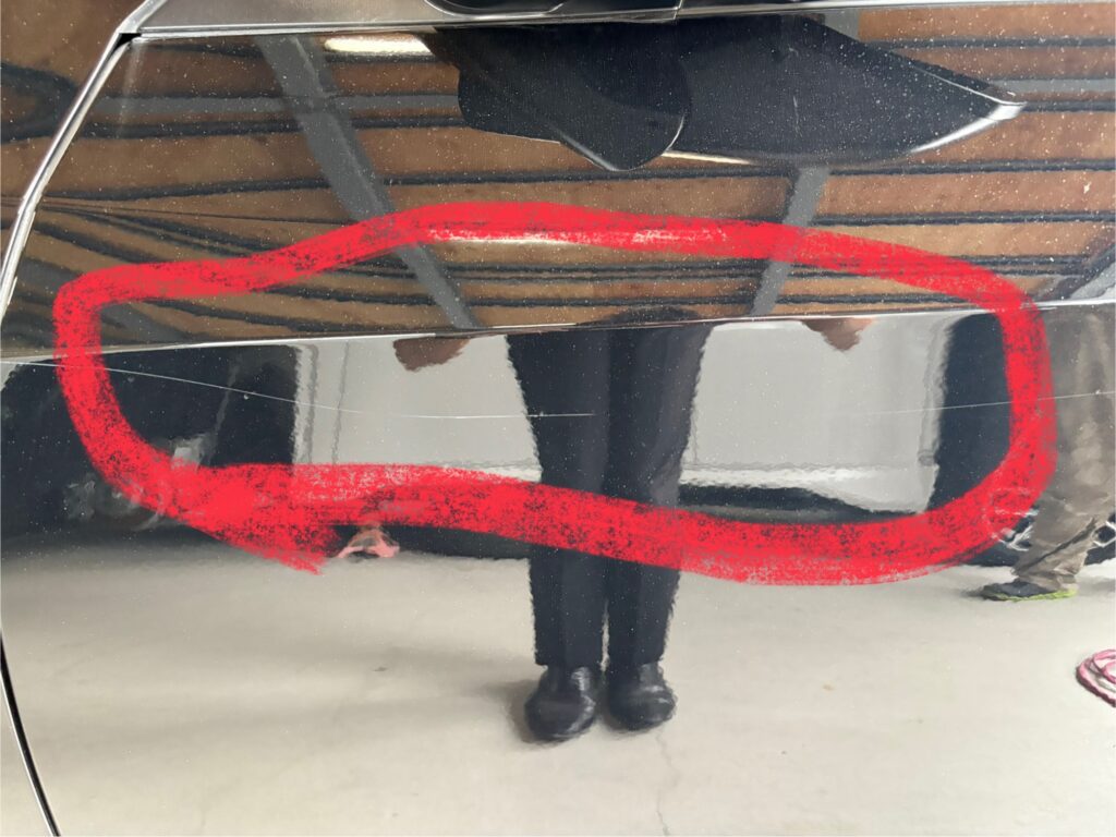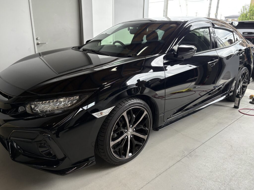 駐車場に停めていたところ、、、コイン傷をつけられていたそうで、まさかの納車2日後の出来事、、、傷消し入庫のシビックです😢!!